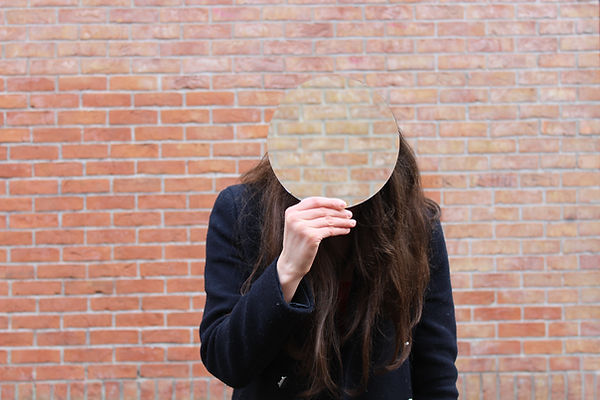 À travers une série nommée Anti-portrait composée de deux photographies, je réalise une mise en scène grâce à des miroirs (verre poli métallisé qui réfléchit les rayons lumineux). Jouant avec la perspective, le motif du mur derrière agissant comme rôle de fond, montre les modèles se fondant avec le reflet du miroir. Les visages sont cachés grâce à ces miroirs, comme anonymes. Le motif ainsi que la forme créent un vide. Modifiant la perception du spectateur, je crée un trompe l’œil, perturbant le regardeur face aux référents. Effectivement, j'aurais pu également travailler le reflet du miroir numériquement pour que l'alignement soit parfait, mais ce travail minutieux est volontaire. Le rôle du miroir est important à considérer ici, effectivement il cache et reflète une autre image, créant un écart avec la réalité. Il renvoie une image à la fois identique et illusoire. Le rôle premier du miroir est celui de la découverte de notre propre personne, venant d’ailleurs du latin mirari voulant dire admirer, il porte alors une réflexion particulière sur les images; comme dit dans Le miroir dans l’art de Manet à Richter de Soko Phay-Vakalis :